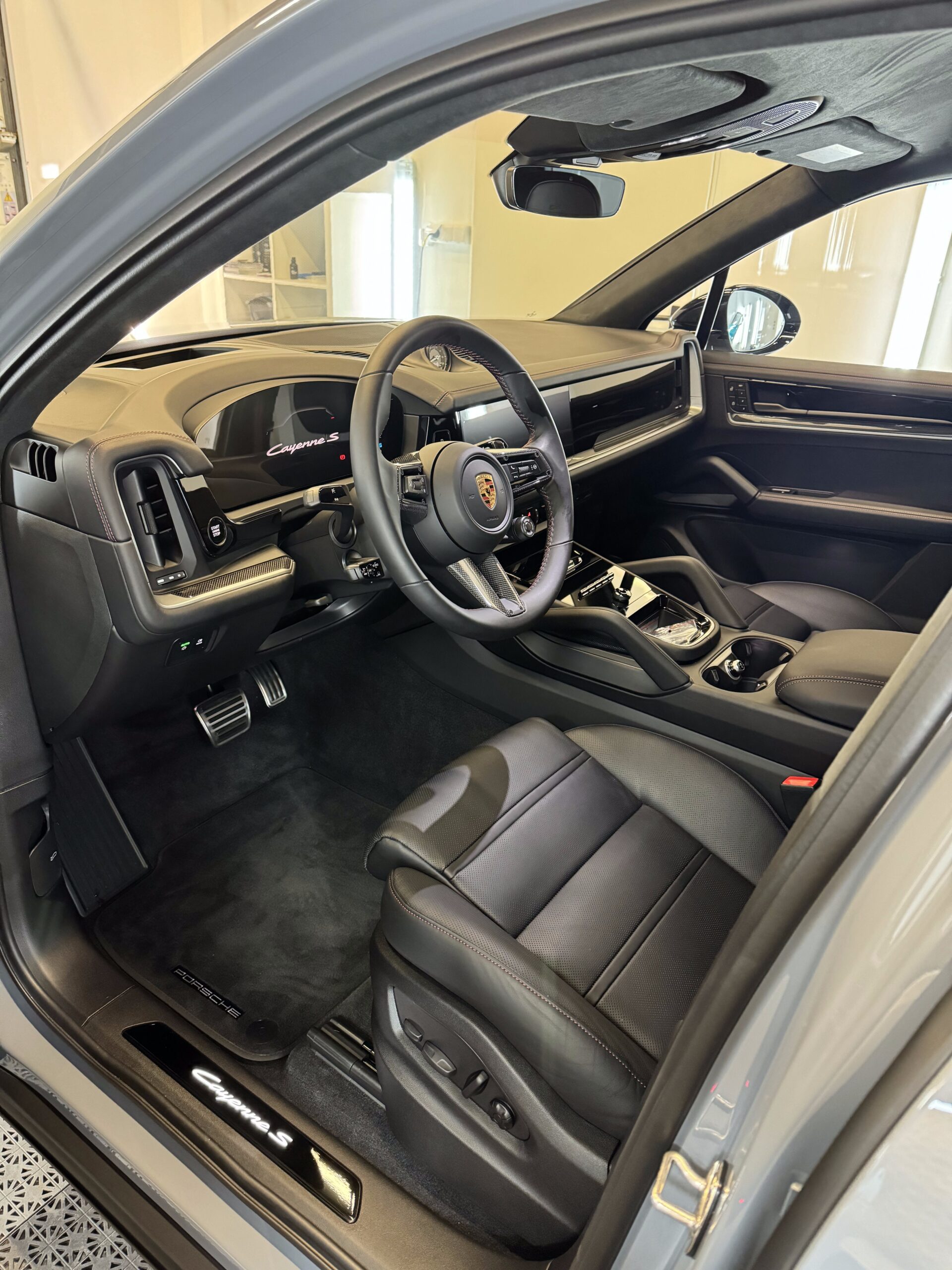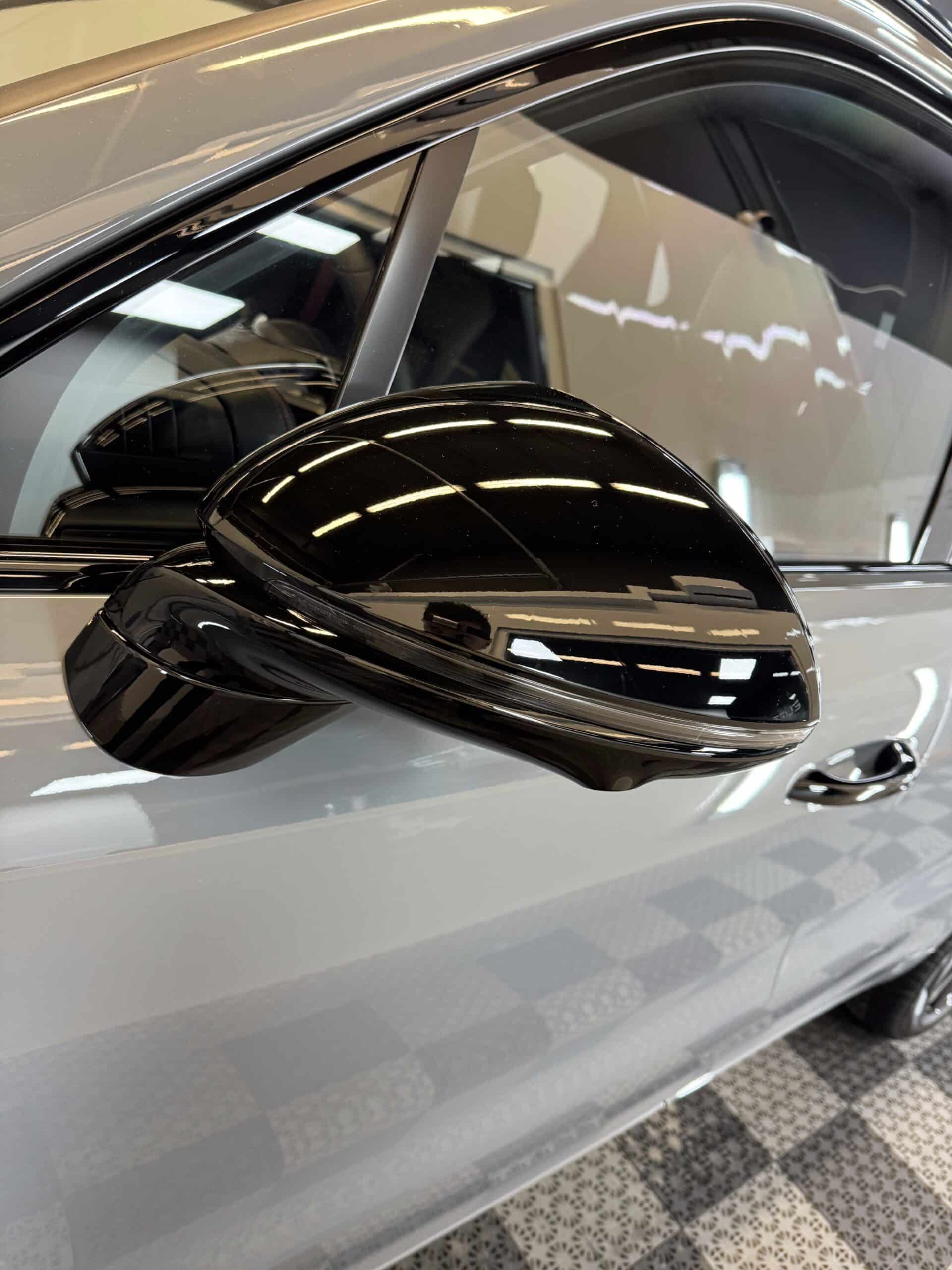 Dopełnieniem tej przemiany był totalny dechroming – wszystkie srebrne elementy zastąpiliśmy głęboką czernią Piano Black, co w połączeniu z proszkowo malowanymi progami nadało sylwetce spójnego, mrocznego wyglądu. Nie pominęliśmy również wnętrza, gdzie delikatne dekory Piano Black zostały precyzyjnie zabezpieczone, aby cieszyły oko nienagannym stanem przez lata. Ten Mercedes to teraz idealne połączenie unikalnej estetyki z najwyższym stopniem ochrony.