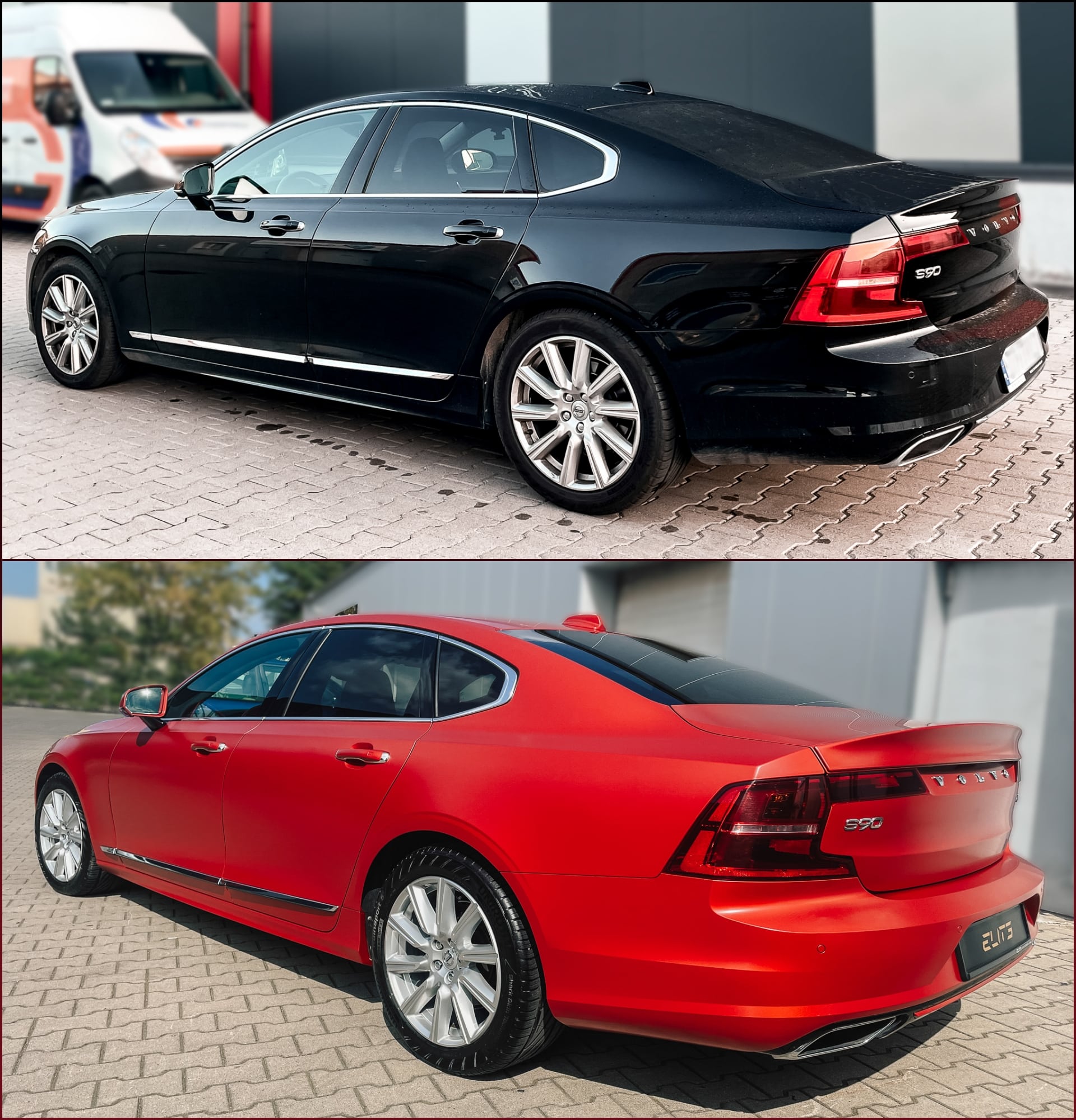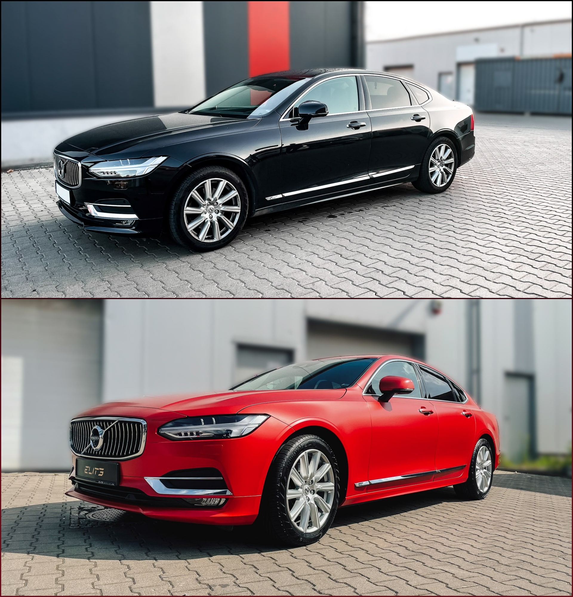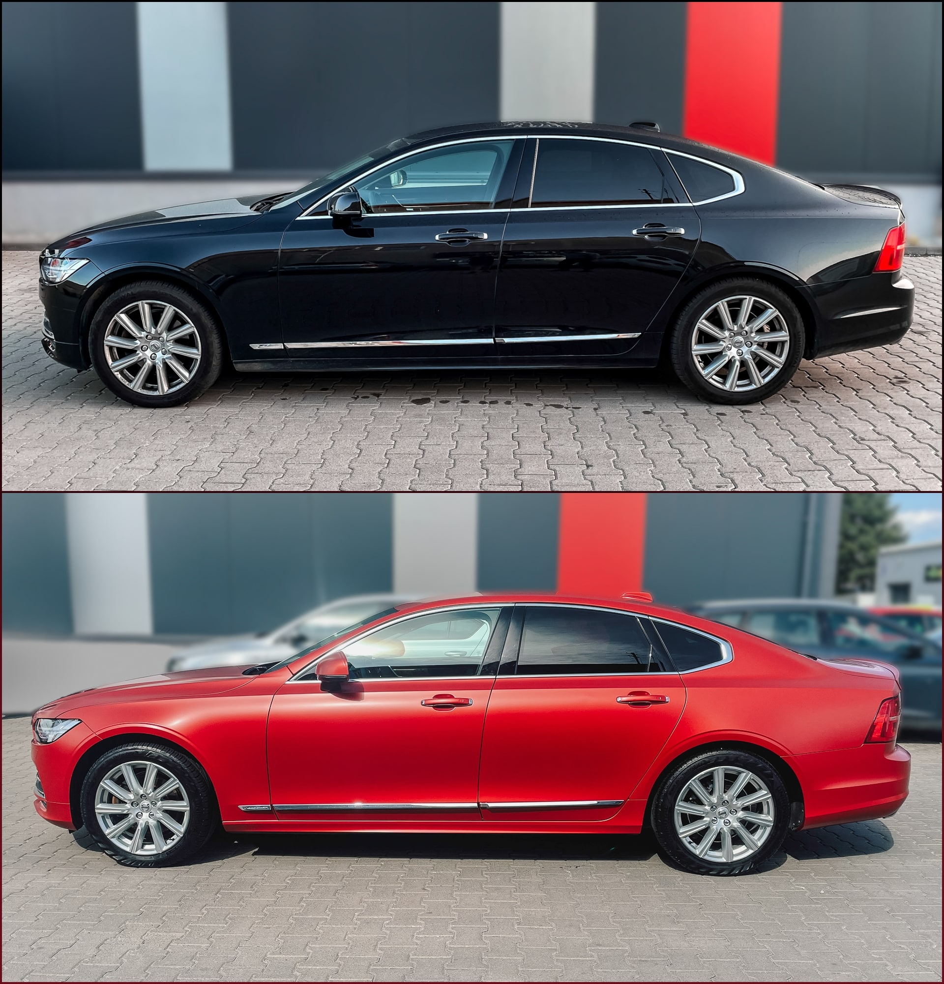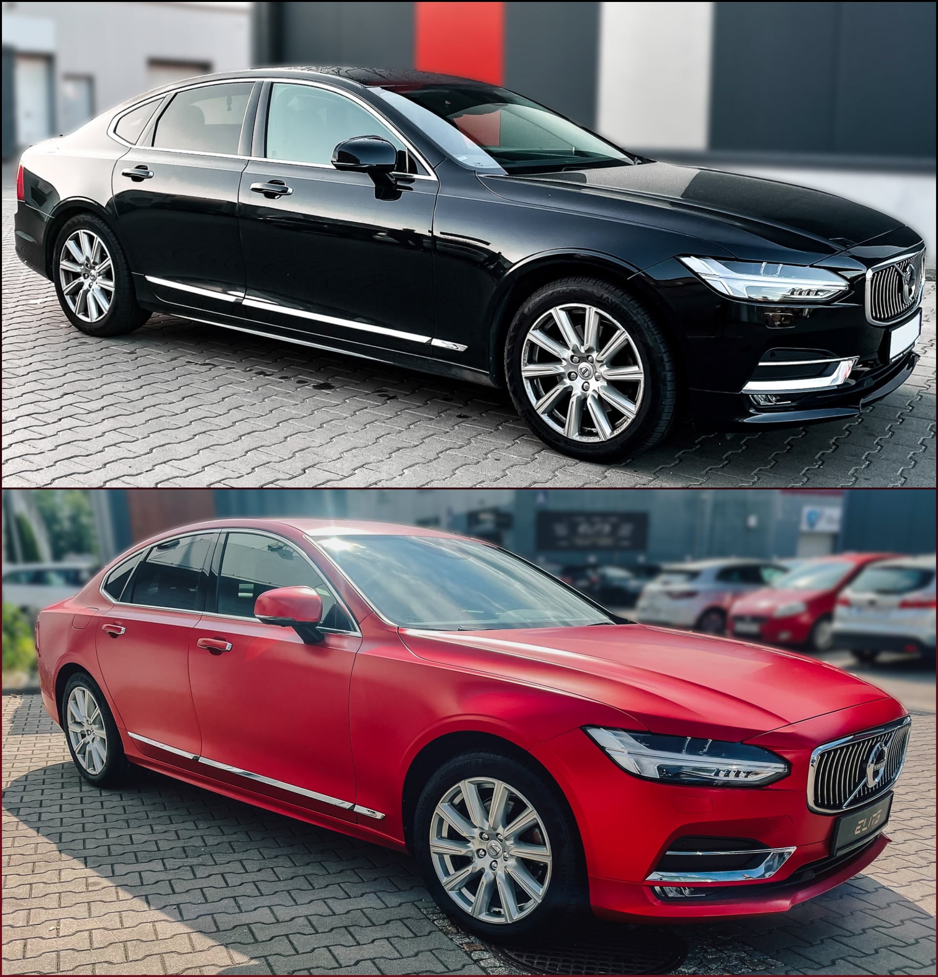 | Zmiana koloru auta z czarnego na satynową czerwień Satin Smoldering Red z palety kolorów 3M |